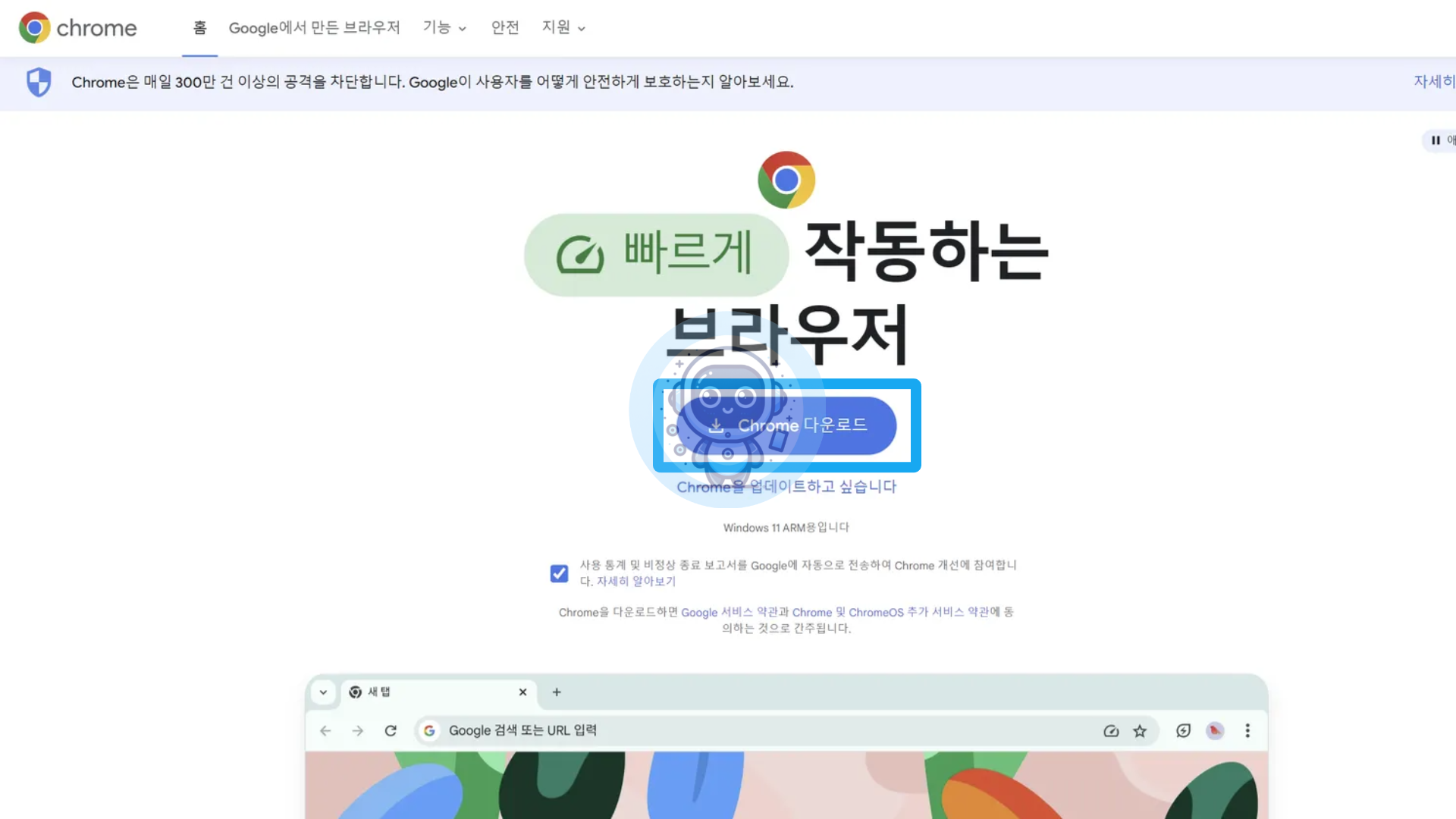 아직 크롬 브라우저가 설치되어 있지 않다면, 먼저 다운로드 및 설치를 진행해주세요.