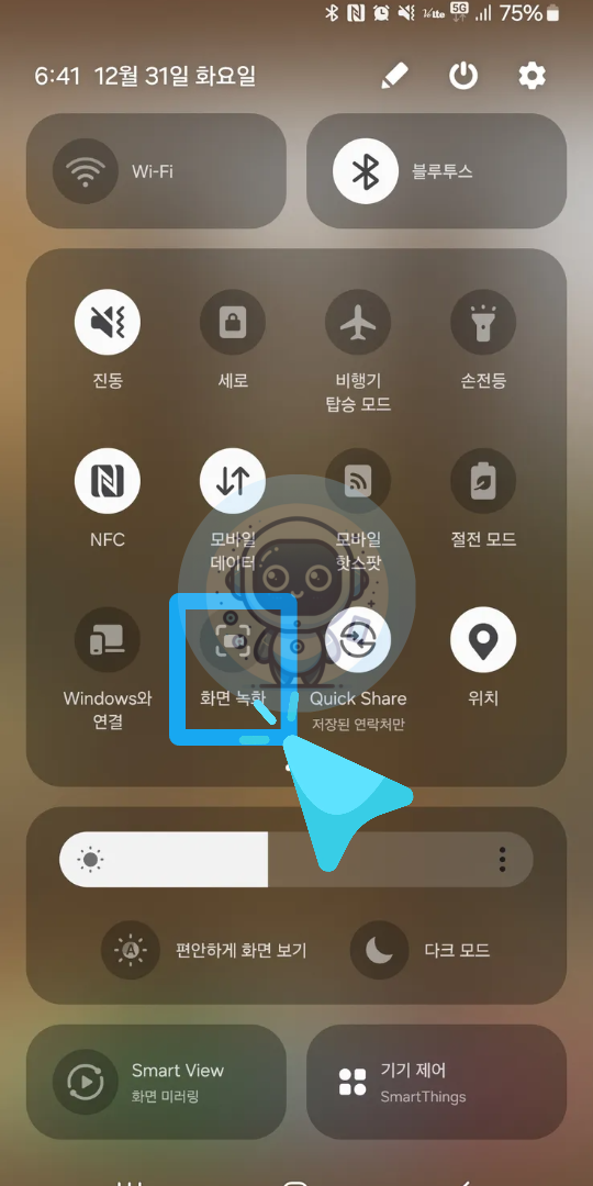 작은 팁 하나 더! 화면 녹화 기능을 더 자주 사용하게 된다면 빠른 설정창에 아이콘을 고정해 두면 훨씬 편리하게 접근할 수 있습니다.