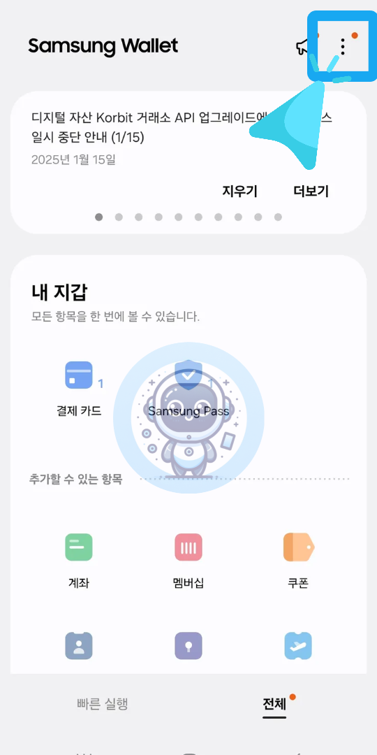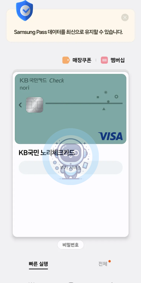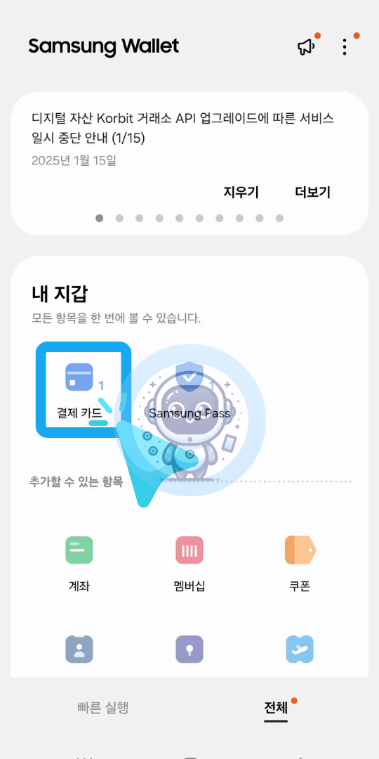 Samsung Wallet을 더 편리하게 사용하고 싶다면, 빠른 실행 기능을 활성화해보세요.