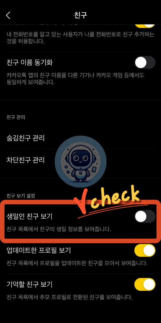 🫣 카카오톡 친구 목록에서 생일인 친구 숨기기