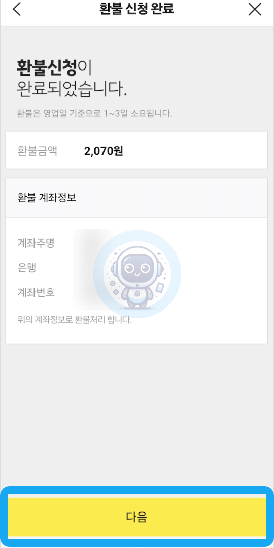 - 계좌 정보를 확인한 후 환불 요청을 완료합니다.