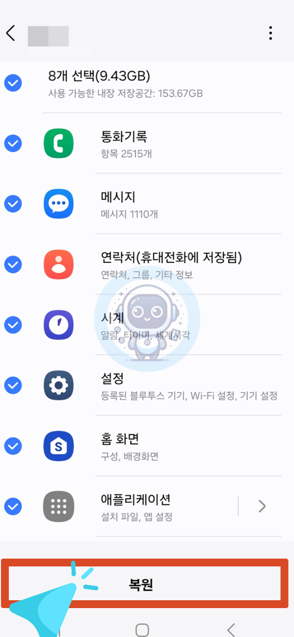 ①계정 및 백업 👉 데이터 복원