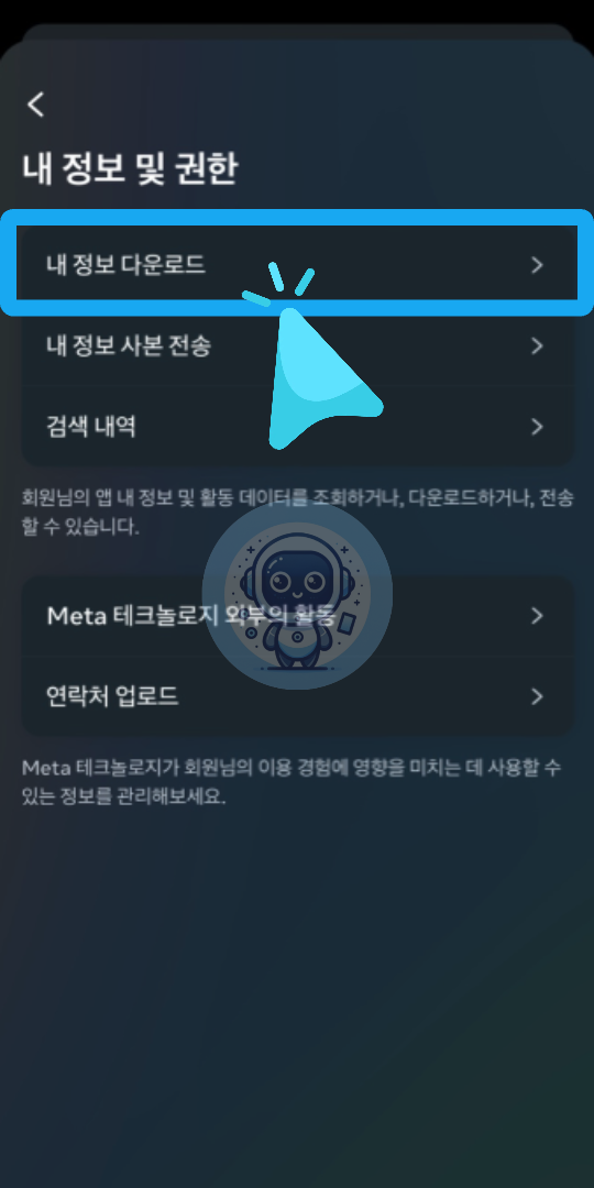 ③ 내 정보 및 권한 👉 내 정보 다운로드