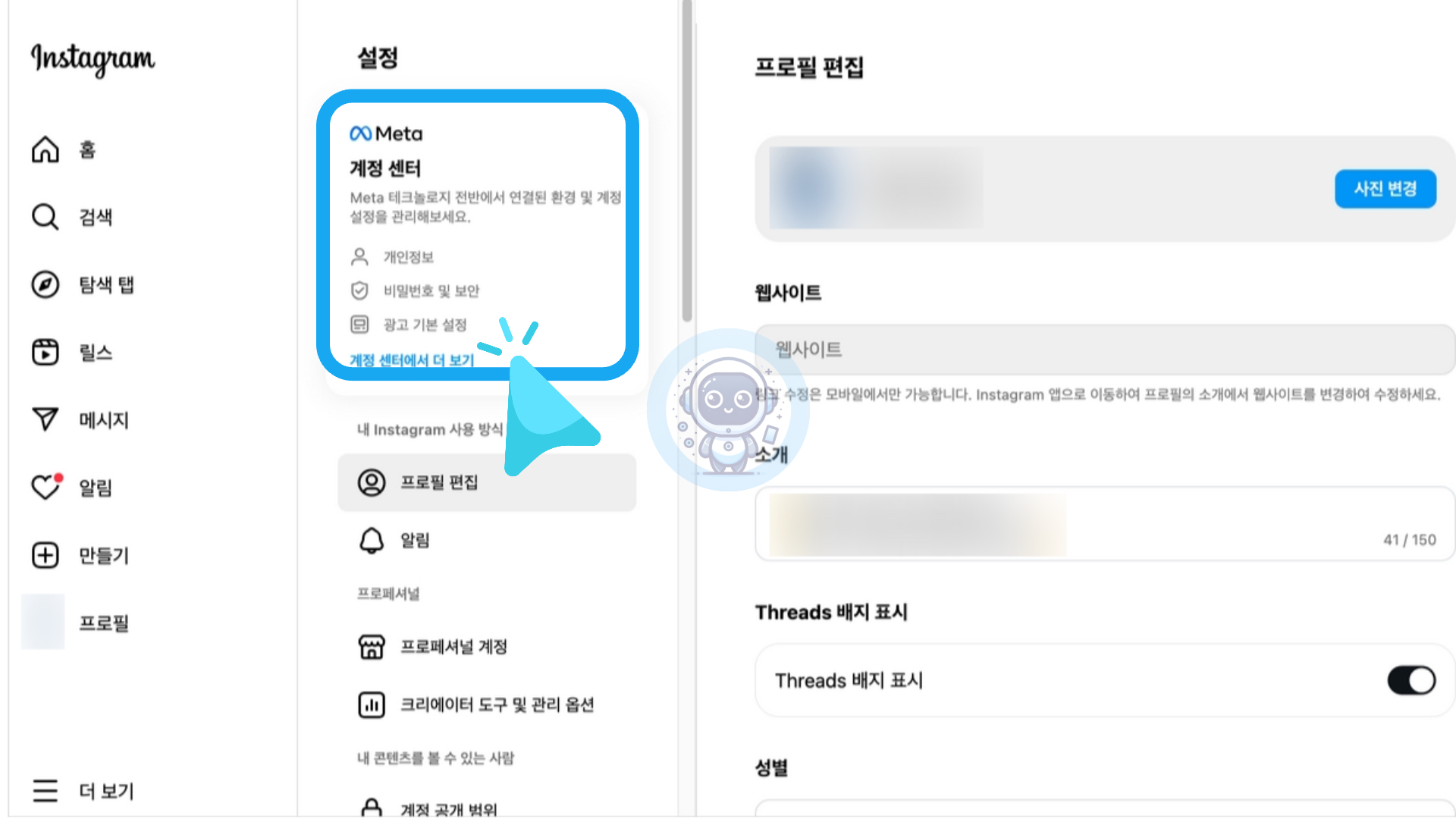 설정 화면에서 [계정 센터]를 클릭합니다.