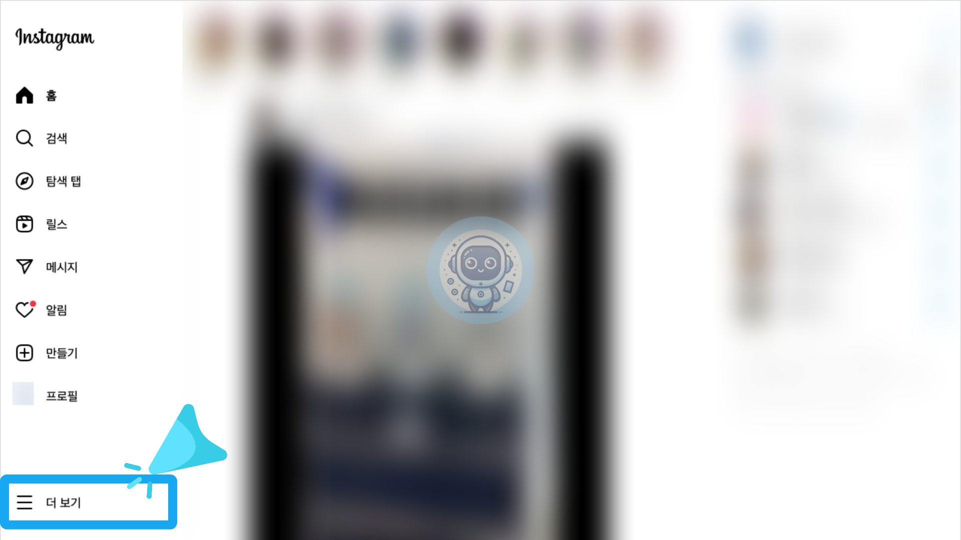 인스타그램 화면에서 좌측 하단에 있는 [세 줄 아이콘]을 클릭합니다.