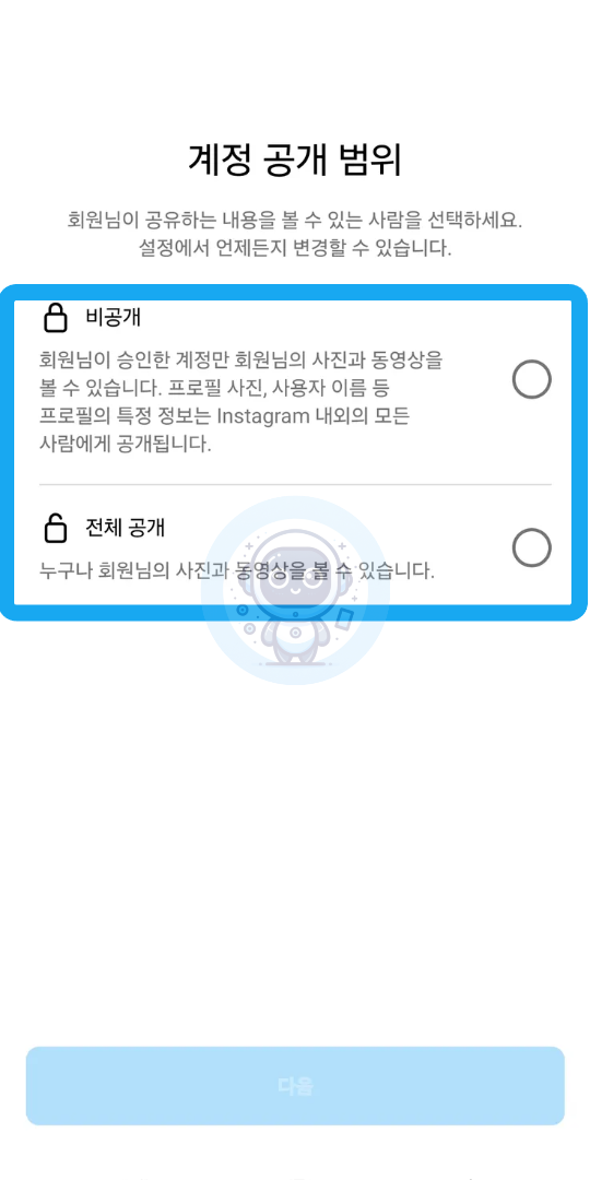 네, 부계정 생성 시 공개 계정 또는 비공개 계정을 선택할 수 있으며, 이후에도 설정에서 변경이 가능합니다.