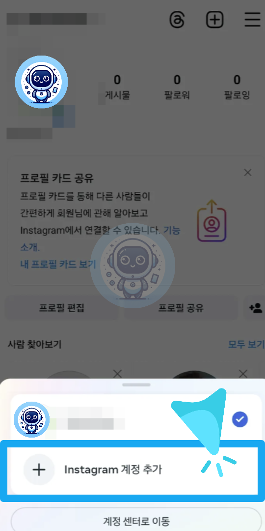 ① 인스타그램 앱 실행 및 새 계정 추가하기