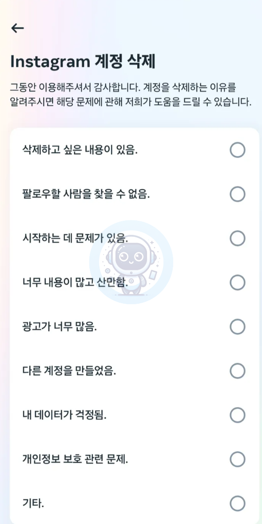 ③ 계정 삭제 및 사유 선택
