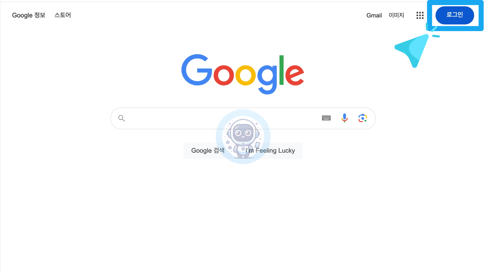 그리고 주소창에 "Google"을 입력해 구글 홈페이지에 접속한 후, 상단의 [로그인] 버튼을 클릭합니다.